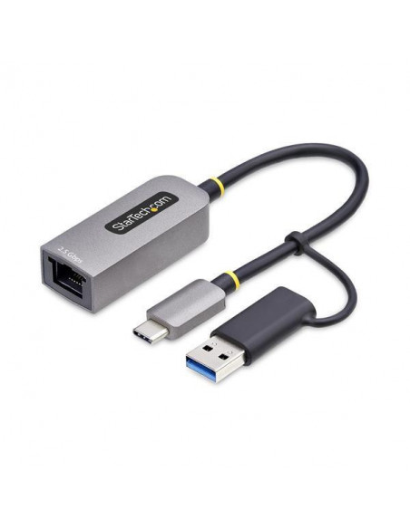 O adaptador de rede StarTech U2GA-USB-C-ETHERNET adiciona uma porta Ethernet 2.5GbE aos seus dispositivos com USB-C ou USB-A.  Oferece desempenho de rede duplicado em cabos Cat5e existentes, instalação fácil com suporte nativo de drivers para vários sistemas operacionais, e é alimentado pelo barramento USB.