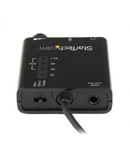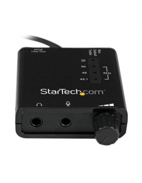 A placa de som externa USB StarTech.com, modelo ICUSBAUDIO2D, proporciona uma solução prática para adicionar saída de áudio digital S/PDIF e conexões de áudio/microfone analógicas de 3,5 mm a qualquer sistema através de USB.  Esta é uma forma eficiente de substituir uma placa de som interna sem necessitar de abrir a caixa do computador.