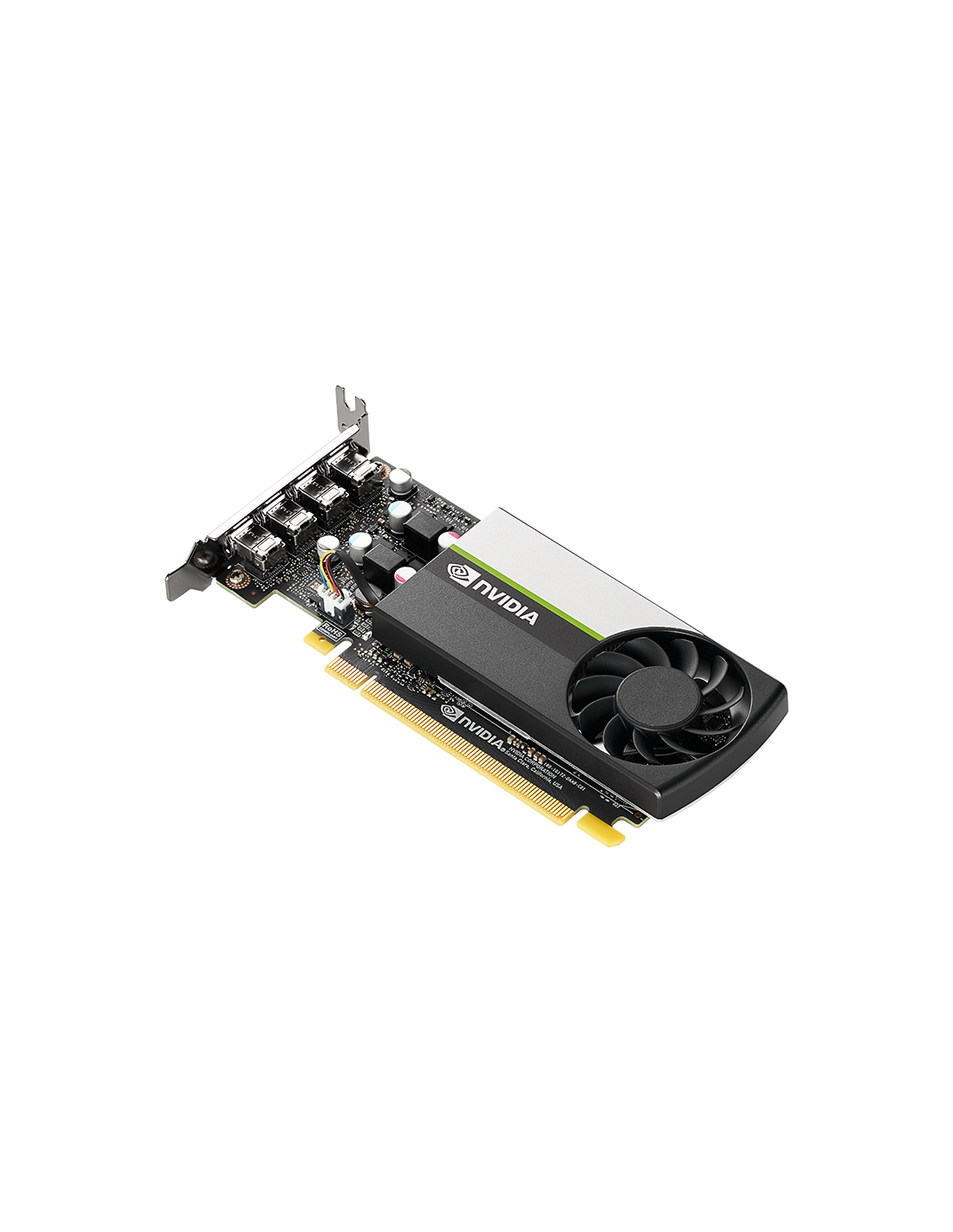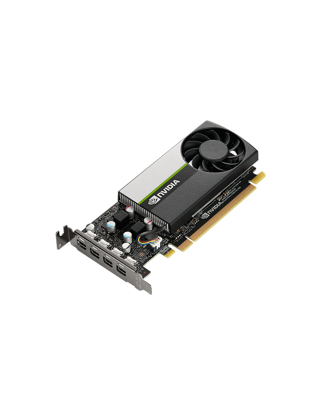 Esta placa gráfica apresenta quatro portas Mini DisplayPort, que permitem a conexão de múltiplos monitores, aumentando a produtividade e a capacidade de visualização. O design de baixo perfil torna a T1000 ideal para sistemas compactos e estações de trabalho com restrições de espaço, mantendo um desempenho de nível profissional.