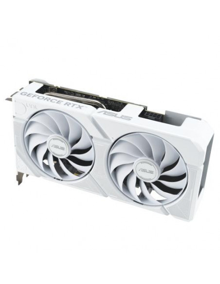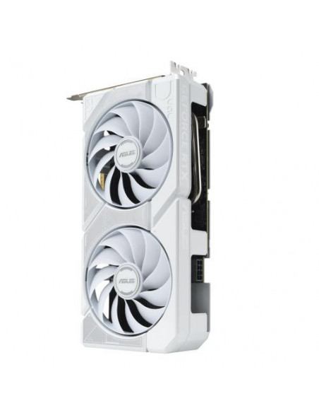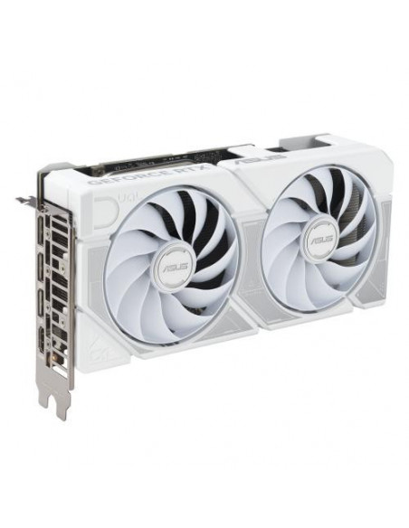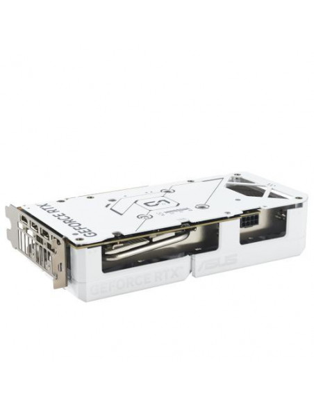 O seu sistema de arrefecimento eficiente, composto por duas ventoinhas ASUS Axial-tech, garante que a temperatura da placa gráfica se mantenha sob controlo, mesmo em sessões de jogo prolongadas. O design de dupla ventoinha melhora o fluxo de ar e dissipa o calor com eficácia. A placa dispõe de uma placa traseira reforçada para melhor protecção e rigidez. A placa gráfica inclui três portas DisplayPort 2.1b e uma porta HDMI 2.1b, permitindo a ligação a até quatro monitores simultaneamente com resolução máxima de 7680 x 4320 pixels. A ASUS inclui utilitários proprietários para monitorizar as temperaturas e o desempenho da placa gráfica, permitindo afinação e overclocking. É recomendada uma fonte de alimentação com pelo menos 550W.