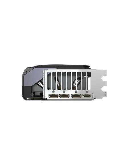 Um dos seus principais destaques é o sistema de arrefecimento WINDFORCE. Este sistema de refrigeração de alta performance combina gel condutor térmico de grau servidor, os inovadores ventiladores Hawk com rotação alternada, tubos de calor de cobre composto, uma grande câmara de vapor, ventiladores activos 3D e refrigeração por tela. Juntos, garantem que a placa mantém temperaturas baixas mesmo sob carga intensa, prevenindo o throttling e assegurando performance estável durante longas sessões de jogo ou trabalho intensivo.