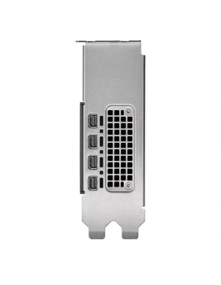 A placa possui 4 portas DisplayPort 1.4a, permitindo a conexão de até quatro monitores com resolução excepcional. O sistema de refrigeração activo, composto por um único ventilador, garante a temperatura de operação ideal, mesmo sob carga pesada. Apesar do seu tamanho compacto, o sistema de refrigeração eficiente permite o funcionamento silencioso mesmo sob carga máxima.