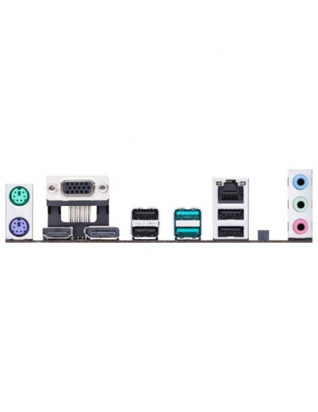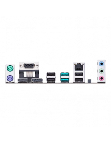 A conectividade é um ponto forte desta motherboard, com suporte para Gigabit Ethernet, permitindo uma ligação de rede rápida e estável. Além disso, ela possui portas USB 2.0, USB 3.2 Gen 1 e portas HDMI e DisplayPort para fácil conexão de periféricos e monitores. O painel traseiro I/O inclui ainda portas PS/2, proporcionando compatibilidade com dispositivos mais antigos.