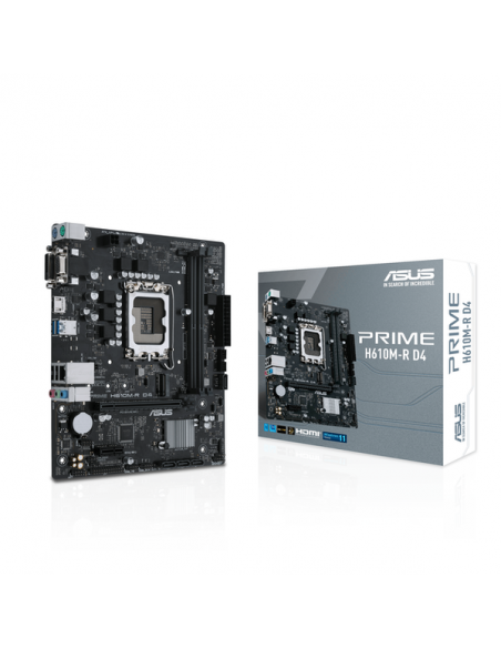 A Motherboard Asus Prime H610M-R D4 é uma placa-mãe micro-ATX projetada para oferecer uma base sólida e compacta para computadores desktop, suportando processadores Intel da série LGA 1700. Esta placa-mãe é ideal para quem procura uma solução eficiente e com um tamanho reduzido, perfeita para montagens em espaços limitados ou para quem busca um sistema equilibrado para tarefas diárias.