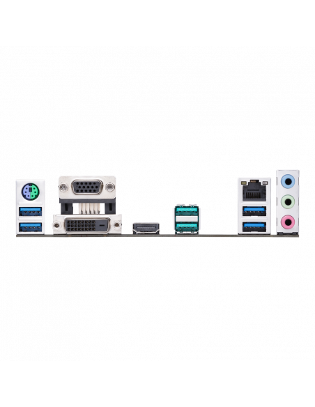 No painel traseiro, a placa-mãe oferece uma variedade de portas, incluindo USB 3.2 Gen 2 Type-A, USB 3.2 Gen 1, HDMI e DVI-D, facilitando a conexão de diversos periféricos e monitores. A presença de uma porta LAN Gigabit garante uma conexão de rede rápida e estável. Além disso, a placa-mãe possui um sistema de áudio de alta qualidade para uma experiência de som imersiva.