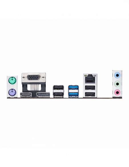 A nível de expansão, inclui uma ranhura PCI Express 4.0 x16 para placas gráficas e duas ranhuras PCI Express 3.0 x1 para outras placas de expansão. As portas traseiras incluem portas USB 2.0 e USB 3.2 Gen 1 para uma ampla gama de periféricos, portas HDMI e DisplayPort para saída de vídeo, e uma porta Ethernet Gigabit para conectividade de rede.