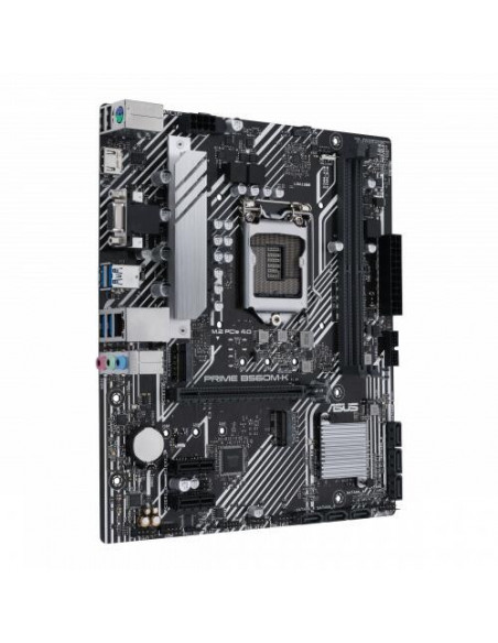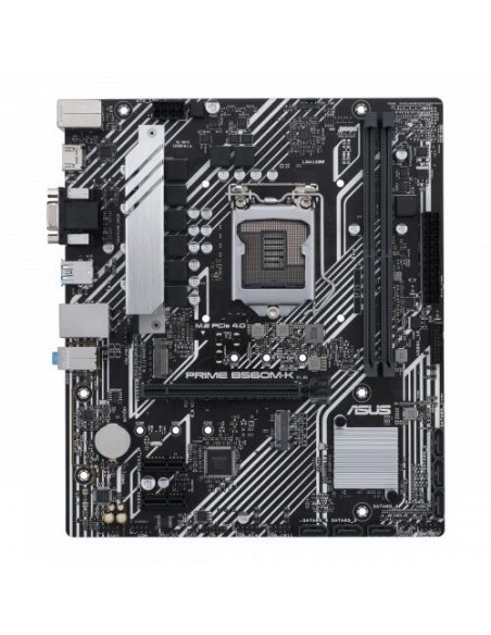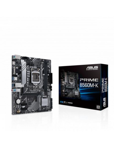 ASUS PRIME B560M-K. Fabricante de procesador: Intel, Socket de procesador: LGA 1200, Procesador compatible: Intel® Celeron®, Intel® Core™ i3, Intel Core i5, Intel Core i7, Intel Core i9, Intel® Pentium® G. tipos de memoria compatibles: DDR4-SDRAM, Tipo de ranuras de memoria: DIMM, Velocidades de reloj de memoria soportadas: 2133,2400,2666,2800,2933,3200,3333,3466,3600,3733,4000,4266,4400,4600,4800,5000 MHz. Interfaces de disco de almacenamiento soportados: M.2, Serial ATA III, Tipos de unidades de almacenamiento admitidas: HDD & SSD. Máxima resolución: 3840 x 2160 Pixeles. Conector USB: USB tipo A