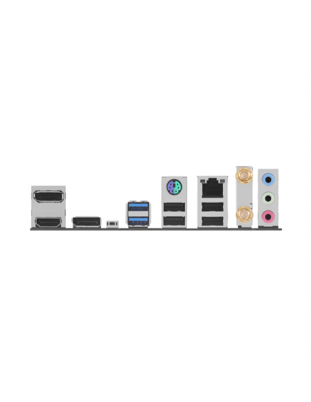 No painel traseiro, são encontradas portas HDMI e DisplayPort, além de portas USB e Ethernet LAN. A tecnologia de áudio de 7.1 canais proporciona uma experiência sonora imersiva. A BIOS UEFI AMI e a memória de 256 Mbit garantem uma inicialização rápida e segura. O design micro ATX torna-a adequada para uma ampla gama de caixas de computador.