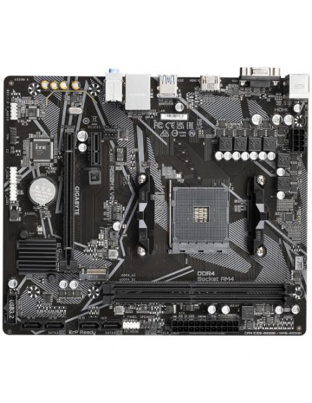 A Gigabyte A520M K V2 é uma placa-mãe compacta e eficiente, ideal para montagem de computadores com processadores AMD Ryzen de gama média. O seu formato Micro ATX economiza espaço e é perfeita para gabinetes mais compactos. Baseada no chipset AMD A520, suporta processadores AMD Ryzen 3, 5, 7 e 9 das 3ª e 5ª gerações, oferecendo um bom equilíbrio entre custo e performance.