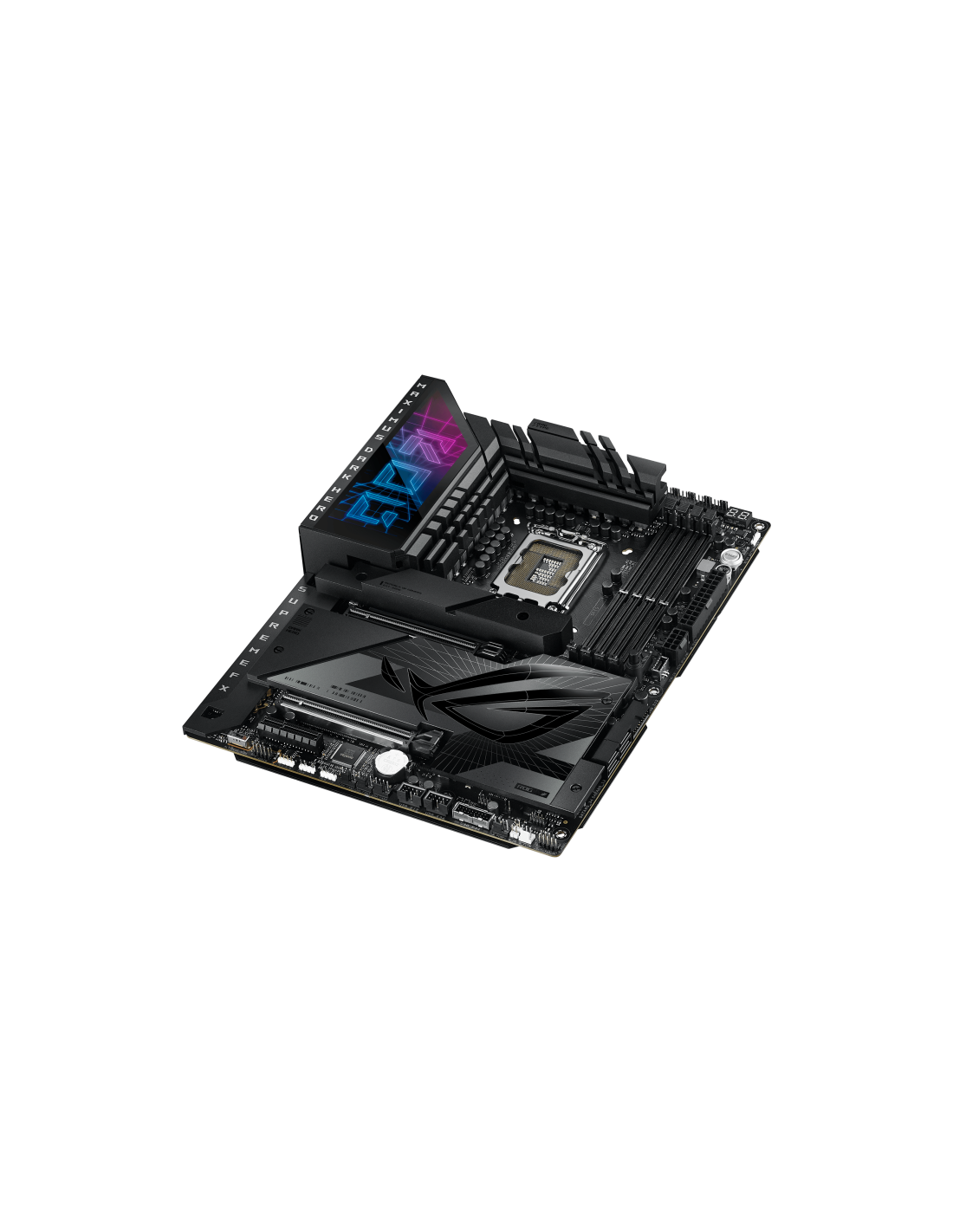 A ASUS ROG MAXIMUS Z790 DARK HERO é uma placa-mãe de alta gama, projetada para proporcionar o máximo desempenho em sistemas desktop. Esta placa-mãe é compatível com processadores Intel da família LGA 1700, incluindo Intel® Celeron®, Intel® Core™ i3, i5, i7 e i9, e Pentium® Gold, garantindo compatibilidade com uma vasta gama de CPUs de última geração.