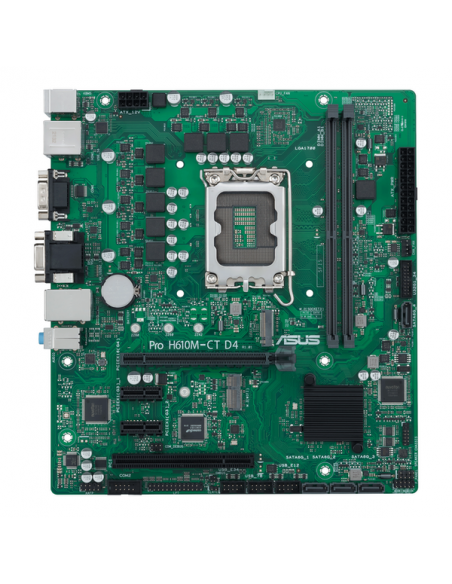 A principal função da ASUS Pro H610M-C D4-CSM é fornecer uma plataforma estável e confiável para componentes de PC, permitindo a instalação e interconexão de um processador, memória, armazenamento e outros periféricos. Com suporte para até 64GB de memória DDR4 em dois slots DIMM, garante um desempenho responsivo em multitarefas e aplicações exigentes.