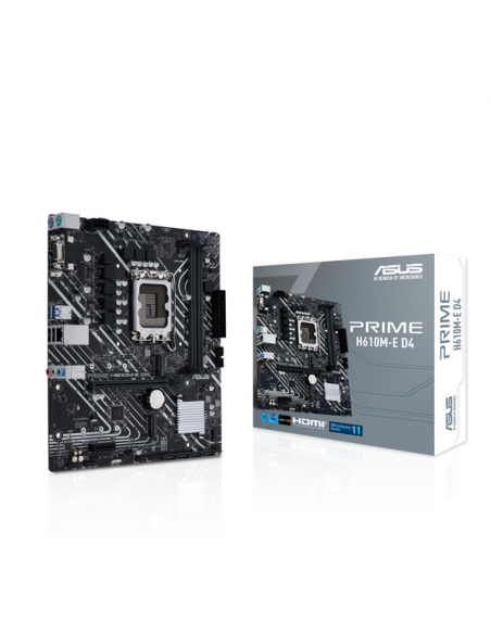 A Motherboard ASUS PRIME H610M-E D4 é uma placa-mãe micro ATX projetada para oferecer desempenho confiável e eficiente em computadores pessoais. Esta placa-mãe é compatível com processadores Intel da série LGA 1700, oferecendo uma ampla gama de opções de CPU, desde Intel Celeron até Intel Core i9, proporcionando flexibilidade para diversas necessidades de uso.