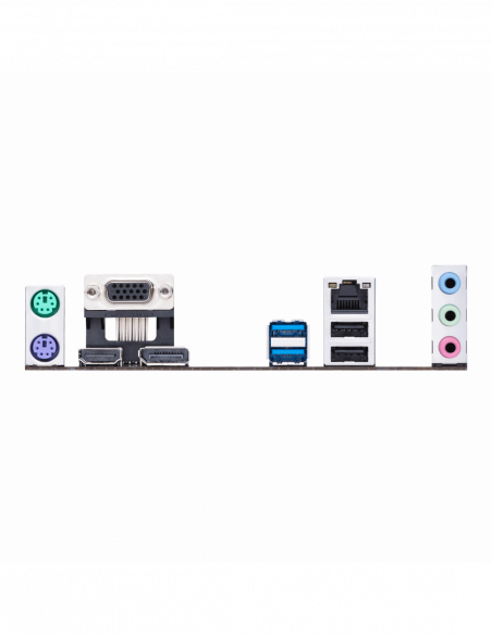 Esta placa-mãe suporta até 64GB de memória DDR4 através de dois slots DIMM, permitindo uma resposta rápida e eficiente em multitarefas e aplicações exigentes. A inclusão de slots M.2 e SATA oferece diversas opções de armazenamento, permitindo a instalação de unidades SSD de alta velocidade para um desempenho otimizado, bem como discos rígidos tradicionais para maior capacidade de armazenamento.