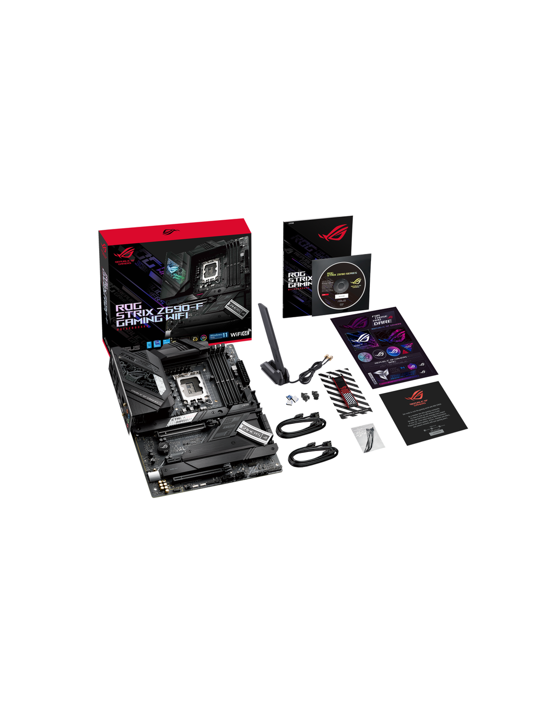 - Conteúdo da embalagem: 4 x SATA 6Gb/s cables, 1 x ASUS 2x2 Dual-Band Wi-Fi moving antennas, 1 x M.2 Q-Latch package, 1 x M.2 Q-Latch package for M.2 backplate, 2 x M.2 Rubber Packages, 1 x ROG key chain, 1 x cable tie, 1 x ROG STRIX stickers, 1 x ROG STRIX thank you card, 1 x S