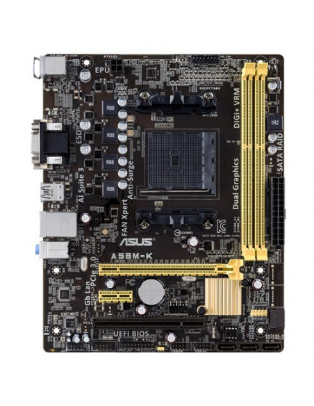 A Motherboard ASUS A58M-K é uma placa-mãe Micro ATX projetada para oferecer uma solução confiável e eficiente para computadores que utilizam processadores FM2+. Com um design compacto, esta placa-mãe é ideal para montar computadores de tamanho reduzido, sem comprometer o desempenho.