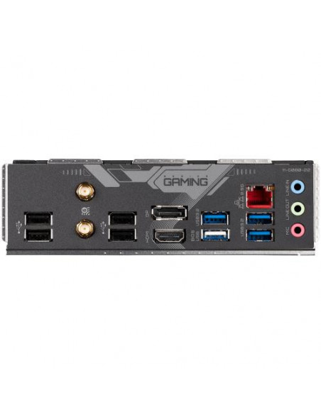 Outras características incluem diversos conectores USB (2x USB 2.0, 3x USB 3.2 Gen 1, 1x USB 3.2 Gen 2 e 1x USB-C), conectores para ventiladores (1x CPU e 3x chassis), conectores para audio frontal, um conector TPM, um conector para tiras LED RGB e um header para portas Thunderbolt. A BIOS é UEFI AMI com 256MB de memória. O factor de forma é Micro ATX, com dimensões de 244 x 244 mm. A placa é compatível com Windows 10 e 11. O sistema de monitorização inclui ventilador, temperatura, tensão e water cooling. A garantia é de 3 anos. A placa inclui software como Norton® Internet Security (versão OEM) e software de gestão de largura de banda de rede. Inclui ainda cabos SATA e uma bateria CR2032.