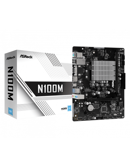 Motherboard AsRock N100M Micro ATX, Intel N100, DDR4, HDMI e DisplayPort