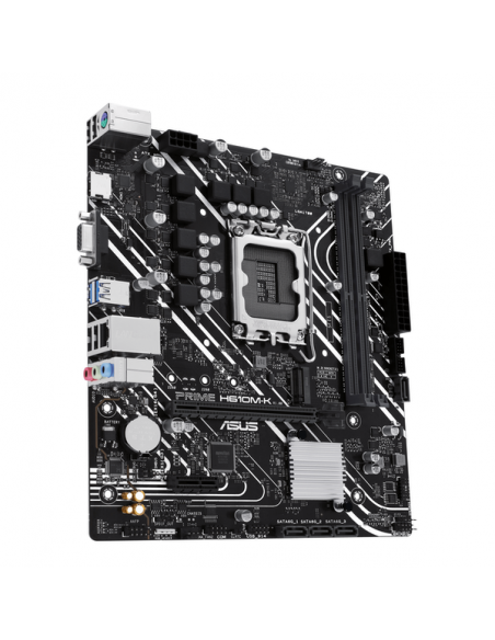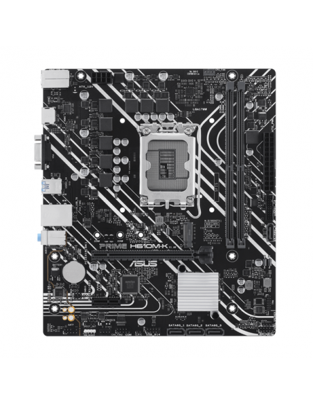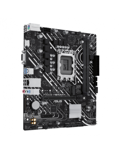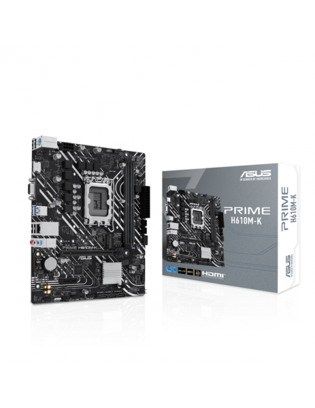 A Motherboard ASUS Prime H610M-K é uma solução de alto desempenho para computadores de secretária, projetada para oferecer estabilidade e compatibilidade com os mais recentes processadores Intel. Esta placa-mãe suporta processadores Intel® Core™ de 12ª e 13ª geração, bem como processadores Intel® Pentium® Gold e Celeron®, utilizando o socket LGA 1700. Com o chipset Intel H610, a placa-mãe garante uma base sólida para sistemas de computação, oferecendo um excelente desempenho.
