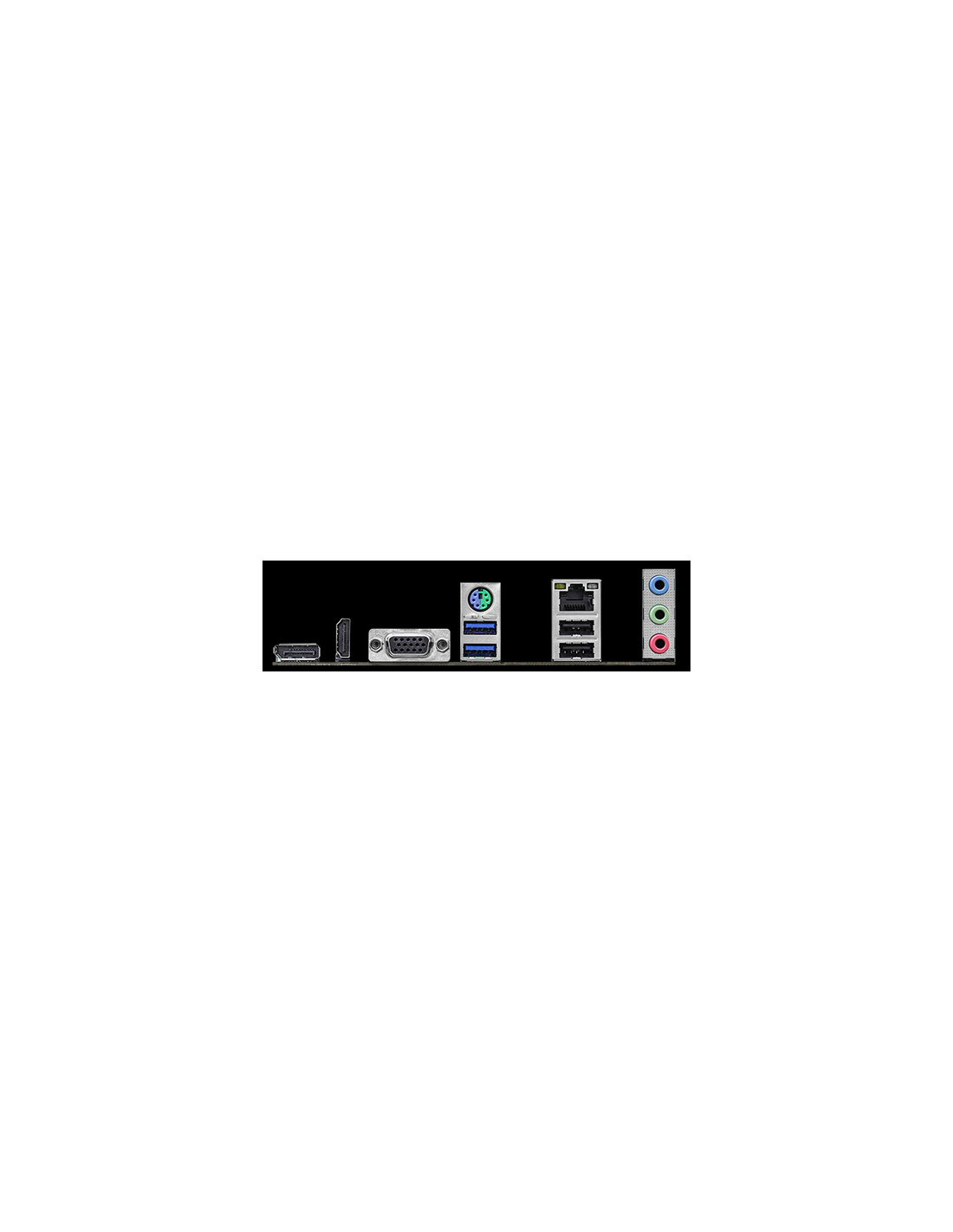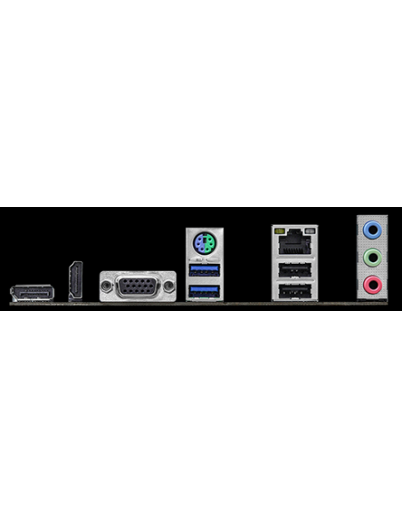 - Painel Traseiro I/O: 2 x USB 3.2 Gen1, 2 x USB 2.0, HDMI, DisplayPort, D-Sub, RJ-45, portas de áudio.