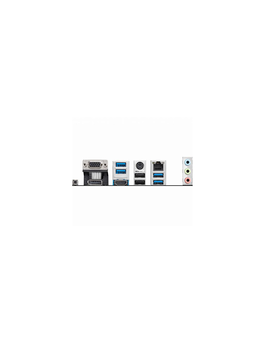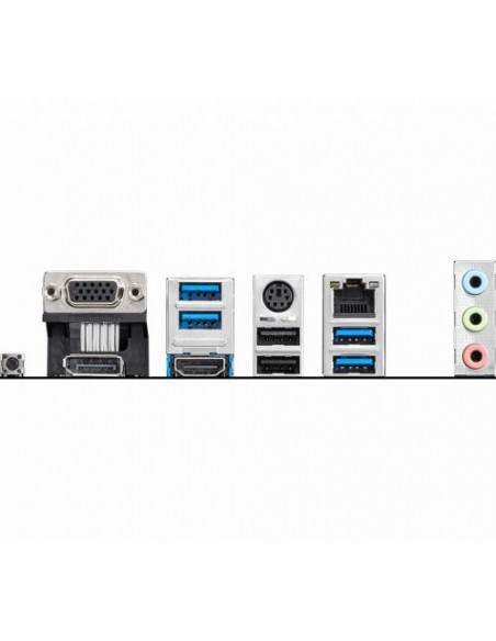 Para conectividade de rede, a placa integra uma interface Gigabit Ethernet com controlador Realtek 8111HN. Em termos de saída de vídeo, dispõe de portas VGA (D-Sub), HDMI 2.1 e DisplayPort, permitindo resoluções até 4096 x 2160 pixels. A placa oferece uma variedade de portas USB, incluindo 2 portas USB 2.0 e 4 portas USB 3.2 Gen 1 (3.1 Gen 1).
