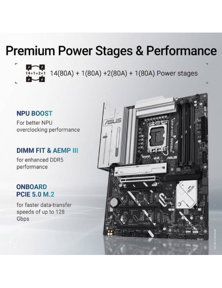 Esta placa-mãe suporta processadores Intel Core Ultra (Série 2) com socket LGA 1851 e memória DDR5, oferecendo velocidades de memória incríveis para um desempenho superior. Com suporte para PCIe 5.0, os utilizadores podem desfrutar das mais recentes placas gráficas e SSDs de alta velocidade. A conectividade é aprimorada com Wi-Fi 7 e rede 2.5G LAN.