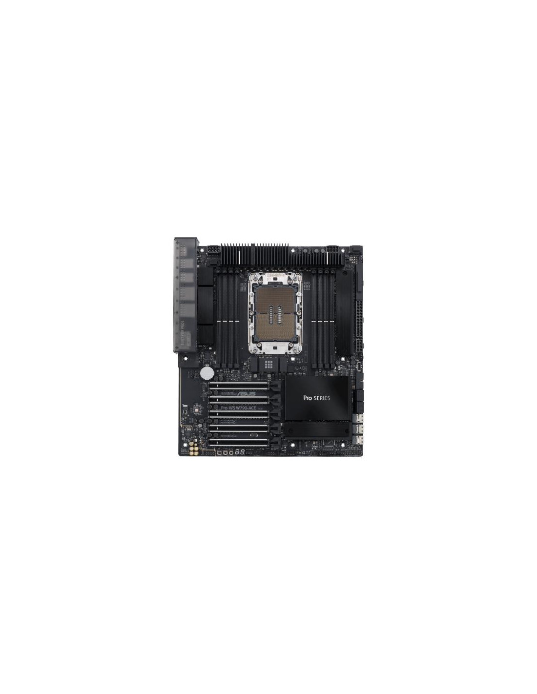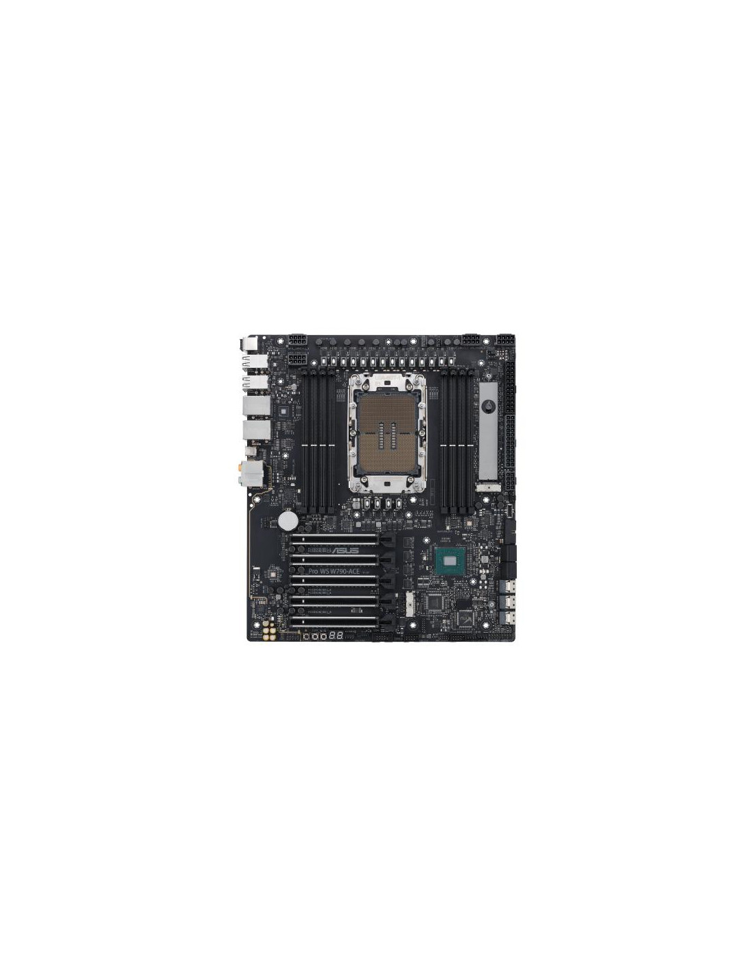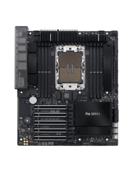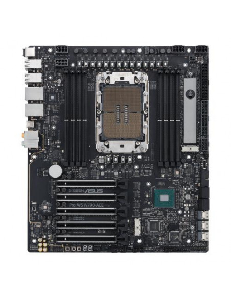 ASUS PRO WS W790-ACE. Fabricante de procesador: Intel, Socket de procesador: LGA 4677, Procesador compatible: Intel® Xeon® W. tipos de memoria compatibles: DDR5-SDRAM, Memoria interna máxima: 2,05 TB, Tipo de ranuras de memoria: DIMM. Interfaces de disco de almacenamiento soportados: M.2, SATA III, Tipos de unidades de almacenamiento admitidas: HDD & SSD, Niveles RAID: 0, 1, 5, 10. Tipo de interfaz ethernet: 2.5 Gigabit Ethernet, 10 Gigabit Ethernet, Ethernet rápido, Gigabit Ethernet. Componente para: Puesto de trabajo, Familia del chipset: Intel, Chipset: Intel W790