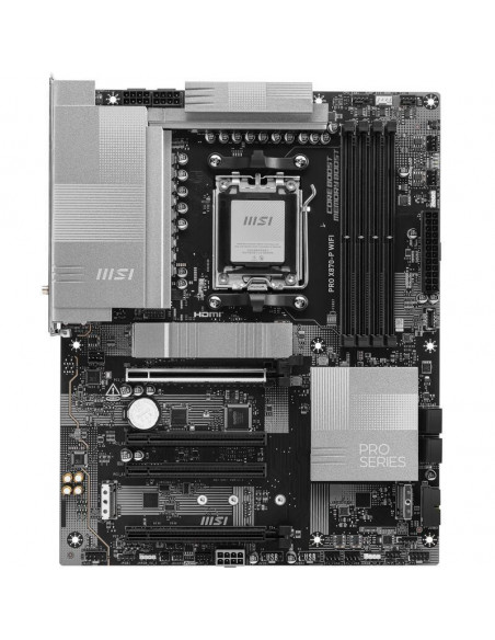 Placa-mãe MSI PRO X870-P WIFI, formato ATX, para processadores AMD AM5. Suporta memória DDR5. Mais detalhes sobre especificações técnicas pendentes.