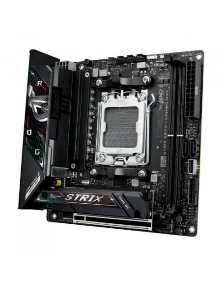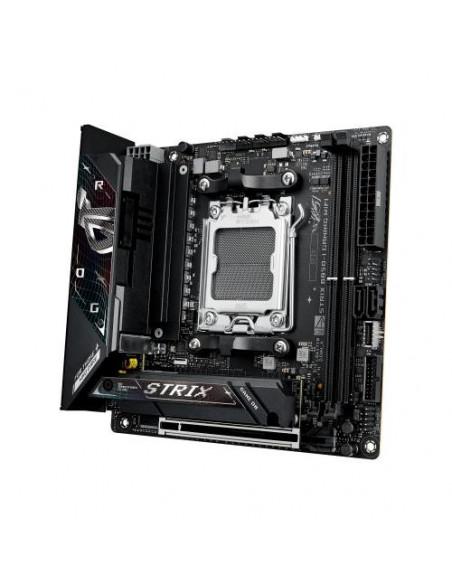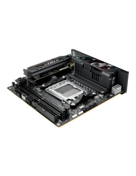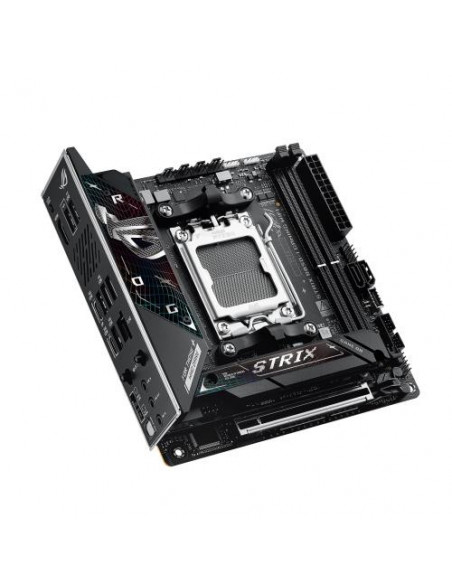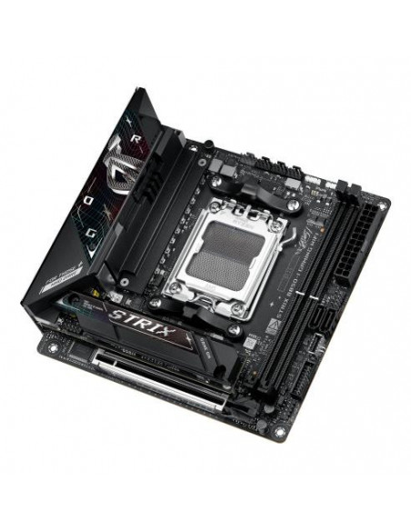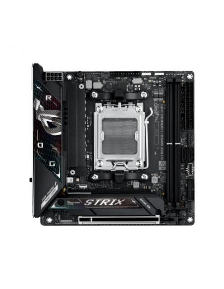 A Asus ROG Strix B850-I Gaming WiFi é uma placa-mãe de formato mini-ITX concebida para sistemas de alta performance e dimensões reduzidas. Compatível com os processadores AMD Ryzen série 7000, 8000 e 9000, esta placa-mãe utiliza o socket AM5, permitindo a utilização das CPUs mais recentes da AMD. O suporte a memória DDR5-SDRAM é até 96 GB, distribuídos por dois slots DIMM, funcionando em modo dual-channel, com velocidades máximas de 8400 MHz. A compatibilidade com ECC e não-ECC é assegurada.