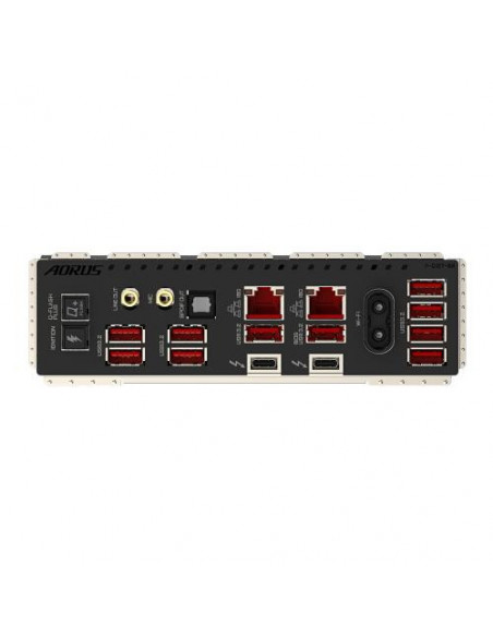 A GIGABYTE Z890 AORUS XTREME AI TOP integra múltiplas opções de armazenamento, incluindo 4 portas SATA III e 4 slots M.2, permitindo a instalação de uma vasta gama de unidades SSDs e HDDs. A gestão de energia e refrigeração é otimizada, com múltiplos conectores para ventoinhas e sistemas de refrigeração líquida. A placa inclui ainda vários conectores RGB, permitindo uma personalização avançada do sistema de iluminação.