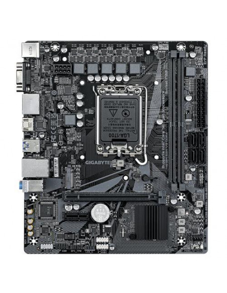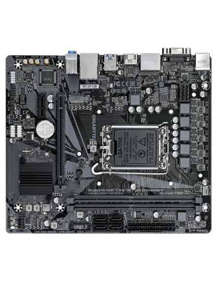 Gigabyte H610M S2H V3 DDR4. Fabricante de procesador: Intel, Socket de procesador: LGA 1700, Procesador compatible: Intel® Celeron®, Intel® Core i3, Intel® Core i5, Intel® Core i7, Intel® Core i9,.... tipos de memoria compatibles: DDR4-SDRAM, Memoria interna máxima: 64 GB, Tipo de ranuras de memoria: DIMM. Interfaces de disco de almacenamiento soportados: M.2, SATA III, Tipos de unidades de almacenamiento admitidas: HDD & SSD. Máxima resolución: 4096 x 2304 Pixeles. Conector USB: USB tipo A