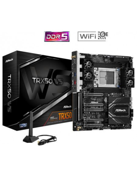 Asrock TRX50 WS. Fabricante de procesador: AMD, Socket de procesador: Socket sTR5, Procesador compatible: AMD Ryzen Threadripper. Memoria interna máxima: 1 TB, Tipo de ranuras de memoria: DIMM, Canales de memoria: Cuatro canales. Interfaces de disco de almacenamiento soportados: M.2, PCI Express 4.0, PCI Express 5.0, SATA III, Niveles RAID: 0, 1, 10. Tipo de interfaz ethernet: 2.5 Gigabit Ethernet, 5 Gigabit Ethernet, 10 Gigabit Ethernet, Ethernet rápido, Gigabit Ethernet, Controlador LAN: Dragon RTL8125BG, Marvell AQtion AQC113C, Estándar Wi-Fi: Wi-Fi 6E (802.11ax). Componente para: PC, Factor de forma: ATX extendida, Familia del chipset: AMD