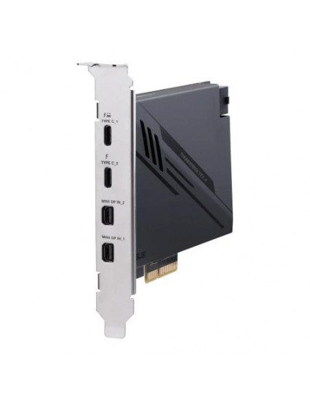 A ASUS ThunderboltEX 4 fornece duas portas USB 3.2 Gen 2 (3.1 Gen 2) Tipo-C, que são ideais para conectar dispositivos modernos que tiram partido desta tecnologia, e também uma porta USB 2.0 para compatibilidade com dispositivos mais antigos. Uma interface Mini DisplayPort possibilita a ligação a monitores de alta resolução, permitindo desfrutar de imagens nítidas e detalhadas. A placa é compatível com o sistema operativo Windows 10 x64. A sua instalação é simples e direta, basta encaixar na slot PCIe compatível.