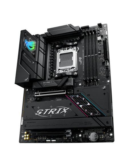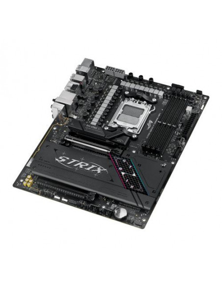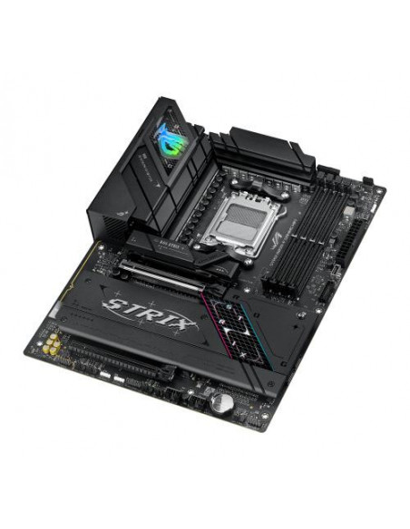 ASUS ROG STRIX B850-F GAMING WIFI. Fabricante de procesador: AMD, Socket de procesador: Zócalo AM5, Procesador compatible: AMD Ryzen 7000 Series, AMD Ryzen 8000 Series, AMD Ryzen 9000 Series. tipos de memoria compatibles: DDR5-SDRAM, Memoria interna máxima: 192 GB, Tipo de ranuras de memoria: DIMM. Interfaces de disco de almacenamiento soportados: M.2, SATA III, Tipos de unidades de almacenamiento admitidas: HDD & SSD, Niveles RAID: 0, 1, 5, 10. Máxima resolución: 7680 x 4320 Pixeles. Tipo de interfaz ethernet: 2.5 Gigabit Ethernet, Estándar Wi-Fi: Wi-Fi 7 (802.11be), Wi-Fi estándares: Wi-Fi 7 (802.11be)