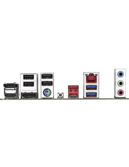 No que diz respeito à conectividade, a placa-mãe integra múltiplas portas USB, incluindo 2 portas USB 2.0, 1 porta USB 3.2 Gen 1 (3.1 Gen 1) e 1 porta USB 3.2 Gen 2 (3.1 Gen 2). Dispõe também de um conector de áudio em painel frontal, e conectores para ventiladores (CPU e chassis), conectores de energia ATX e EPS (8 pinos), e conectores Molex. Os conectores para tiras LED RGB e TPM também estão incluídos.