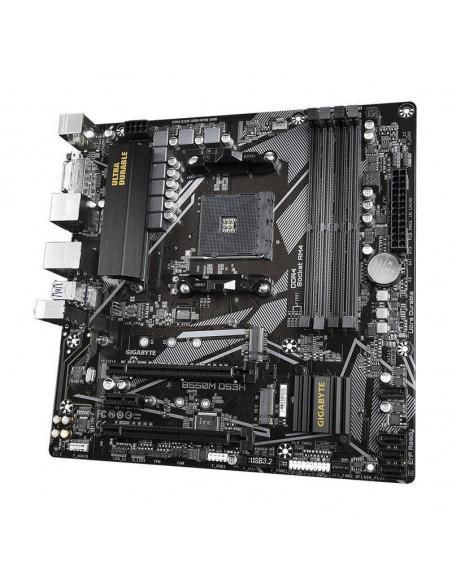 A Gigabyte B550M DS3H é uma placa-mãe Micro ATX projetada para processadores AMD Ryzen de soquete AM4. Esta placa-mãe oferece um excelente equilíbrio entre desempenho e tamanho compacto, ideal para sistemas de jogos ou escritórios compactos. O seu design eficiente e recursos robustos garantem estabilidade e confiabilidade. Vamos explorar em detalhe as suas características: