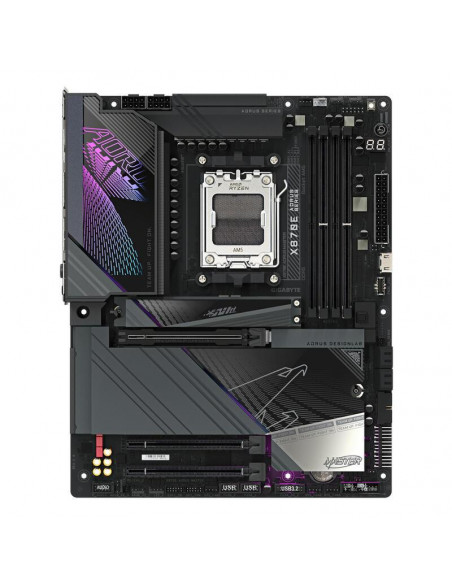 Para além do desempenho bruto, a placa-mãe inclui uma variedade de características para uma experiência otimizada: múltiplos conectores USB 3.2 Gen 2x2 e USB 2.0 para uma ampla variedade de periféricos; conectores para tiras LED RGB para personalizar a iluminação do seu sistema; e um sistema de monitorização abrangente para controlar a temperatura, a tensão e a velocidade do ventilador, tudo diretamente na BIOS ou através do software da GIGABYTE.