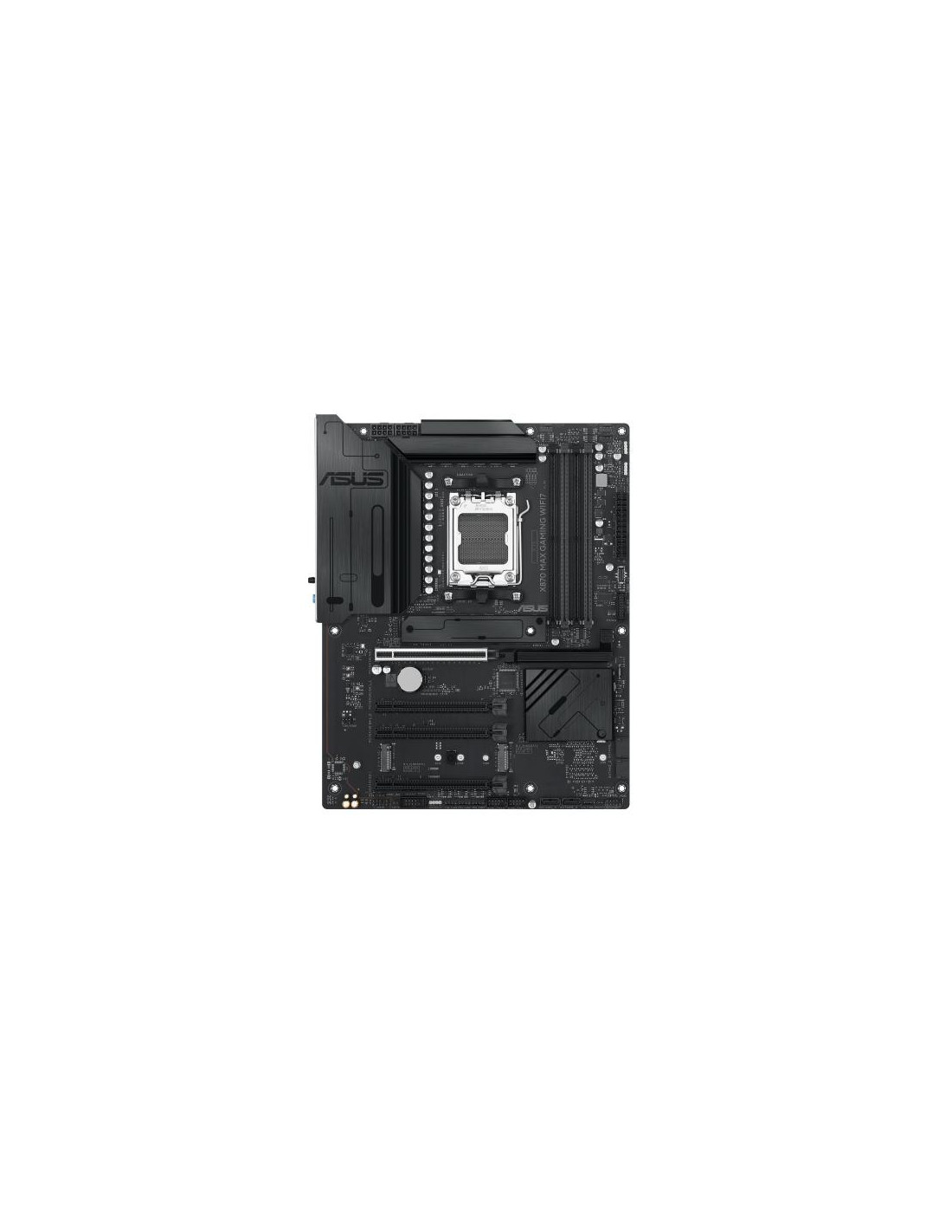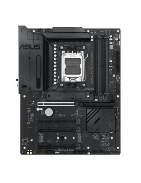 A motherboard ASUS X870 MAX GAMING WIFI7 é uma placa-mãe de alto desempenho para processadores AMD Ryzen série 7000, 8000 e 9000, com suporte para até 256GB de RAM DDR5. Oferece conectividade Wi-Fi 7 e Ethernet 2.5 Gigabit, além de múltiplas portas USB, incluindo USB4. Integra slots M.2 e SATA para armazenamento. Design ATX para compatibilidade com gabinetes convencionais.