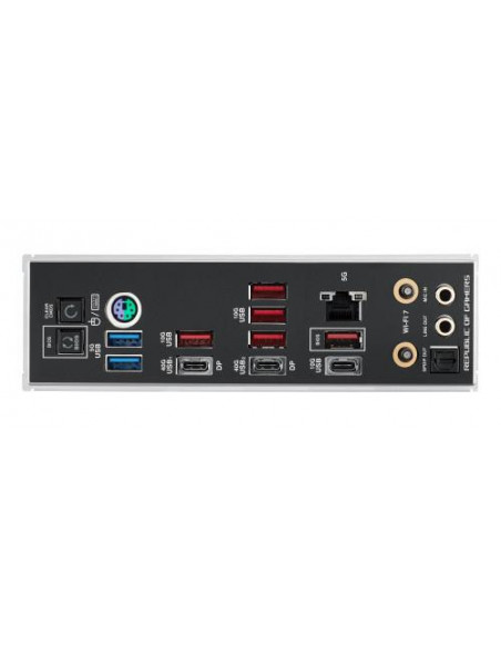 A conectividade é um ponto forte desta placa-mãe. Oferece Ethernet de 5 Gigabit para transferências de dados ultrarrápidas, Wi-Fi 7 (802.11be) para conexões sem fios de alta velocidade e Bluetooth 5.4 para ligação de periféricos. Dispõe ainda de vários conectores USB, incluindo 2 USB4.0 Gen 3x2, 8 USB 3.2 Gen 2, e 2 USB 2.0, assegurando uma grande variedade de opções para ligar periféricos. O painel de E/S posterior integra um conector para antena Wi-Fi/AP.