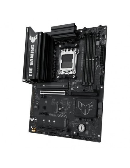 A placa-mãe Asus TUF Gaming B850-E WIFI é uma solução de alta performance para sistemas baseados em processadores AMD. Concebida para entusiastas e jogadores, oferece uma combinação de funcionalidades avançadas e estabilidade superior. A compatibilidade com processadores AMD Ryzen séries 7000, 8000 e 9000, através do socket AM5, garante atualizações futuras sem preocupações. A placa suporta memória DDR5-SDRAM, permitindo até 256GB de memória RAM em quatro slots DIMM, operando em modo dual-channel. Para armazenamento, oferece quatro portas SATA III e três slots M.2, permitindo a utilização de discos SSD NVMe de alta velocidade.