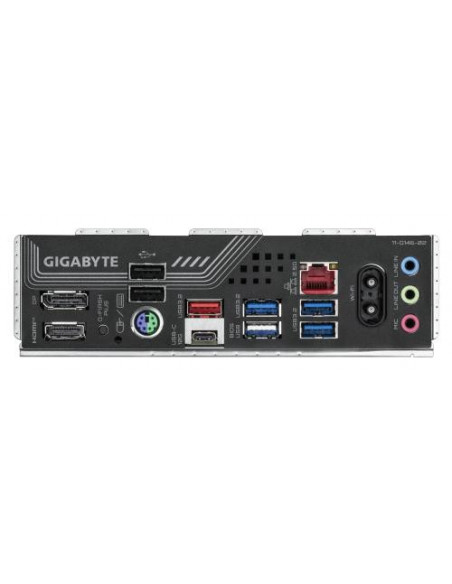 Esta placa-mãe integra ainda múltiplas portas USB 3.2 Gen 2x2, USB 3.2 Gen 1, e USB 2.0 para uma ampla conectividade de periféricos. A placa também possui saídas de vídeo HDMI e DisplayPort, compatíveis com resoluções 4K Ultra HD, ideal para monitores de alta resolução. As características incluem ainda áudio de alta definição com codec Realtek ALC897, múltiplos conectores para ventoinhas e sistemas de refrigeração líquida, e suporte para RGB LED. A placa-mãe segue o fator de forma ATX, adequada para gabinetes ATX standard. A Gigabyte inclui uma versão OEM do Norton Internet Security e software de gestão de largura de banda LAN.