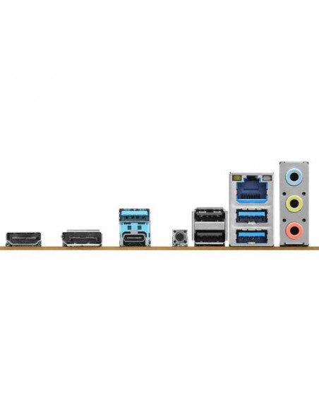 Para conectividade de rede, a placa integra um controlador LAN Gigabit Ethernet 2.5G da Realtek (Dragon RTL8125BG), oferecendo velocidades de rede mais rápidas. Para portas USB, conta com 2 portas USB 2.0, 2 portas USB 3.2 Gen 1 (3.1 Gen 1) e 1 porta USB 3.2 Gen 2x2 tipo C. Em termos de saída de vídeo, está equipada com uma porta HDMI e uma porta DisplayPort 1.4, permitindo a ligação de monitores com esta interface.