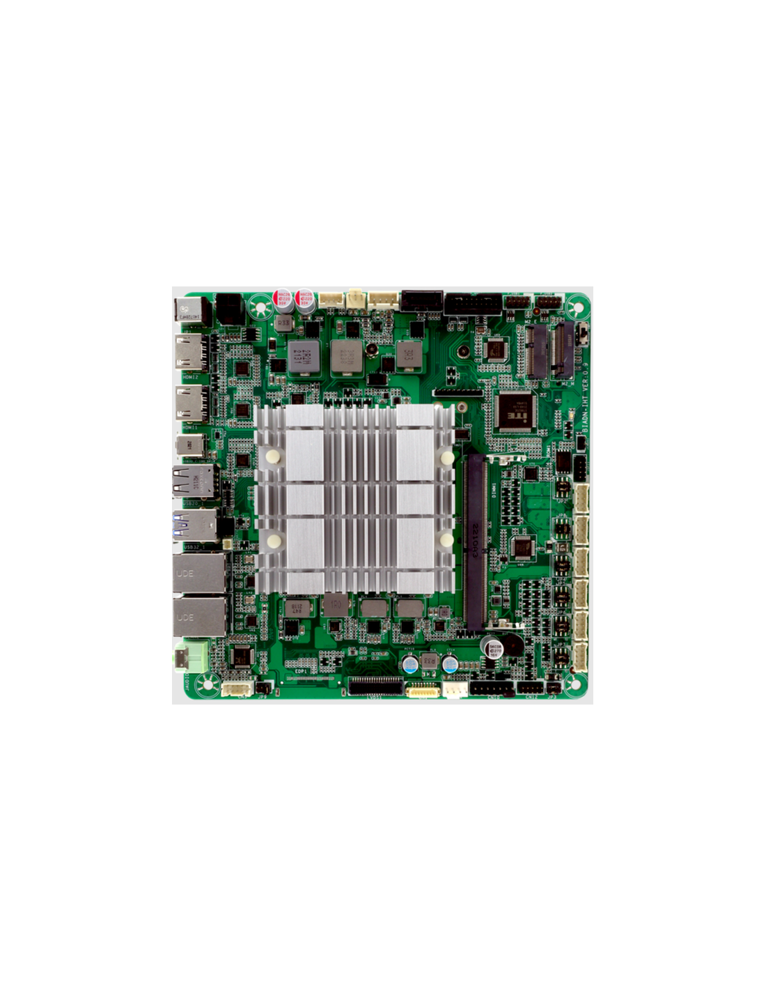 Em termos de vídeo, esta motherboard oferece múltiplas opções de display, incluindo duas portas HDMI e uma porta USB-C com capacidade de saída de vídeo, permitindo a conexão a múltiplos monitores. Inclui também uma saída LVDS ou eDP, oferecendo flexibilidade para diversas configurações de display. O suporte para múltiplos displays torna-a ideal para aplicações que necessitam de várias telas, como sinalização digital ou estações de trabalho.