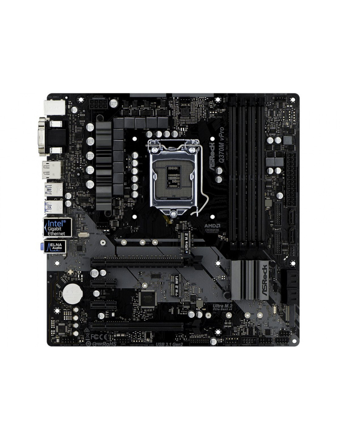 A Motherboard AsRock Q370M VPRO é uma placa-mãe Micro ATX que suporta processadores Intel Core de 8ª geração (Socket 1151). Ideal para ambientes corporativos, possui tecnologia Intel vPro.