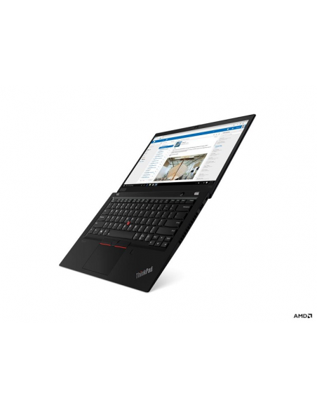 Lenovo ThinkPad T14s. Família de processador: AMD Ryzen 5 PRO, Modelo de processador: 4650U, Frequência do processador: 2,1 GHz. Tamanho do ecrã na diagonal: 35,6 cm (14"), Tipo de HD: Full HD, Resolução: 1920 x 1080 pixels. Capacidade da memória incorporada: 8 GB, Tipo de memória interna: DDR4-SDRAM. Capacidade total de armazenamento: 256 GB, Armazenamento: SSD. Sistema operativo instalado: Windows 10 Pro. Cor do produto: Preto