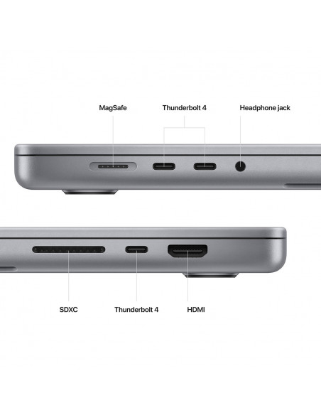 A capacidade de armazenamento SSD de 1TB garante que terá espaço suficiente para todos os seus ficheiros e projetos, enquanto a memória RAM de 16GB permite uma multitarefa fluida e eficiente. As portas Thunderbolt 4 oferecem conectividade versátil para periféricos e acessórios, e a bateria de longa duração permite que trabalhe durante horas sem se preocupar com tomadas.