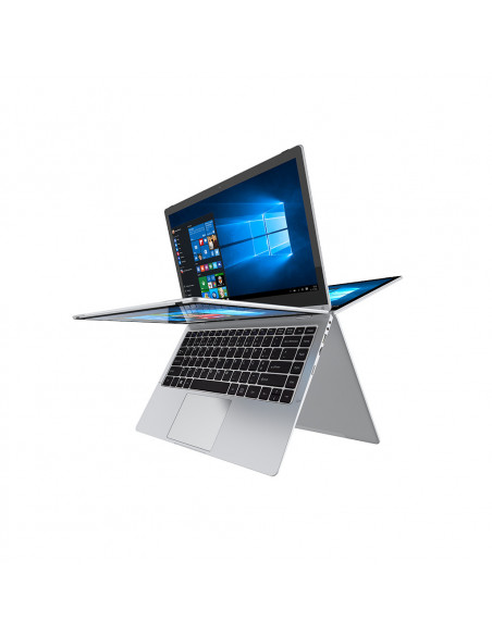 Portátil híbrido INSYS FlexBook 13p, ideal para mobilidade e produtividade. Ecrã tátil de 13,3 polegadas FHD IPS, processador Intel Celeron N4100, 8GB de RAM e armazenamento SSD de 512GB. Sistema operativo Windows 10 Home. Design fino e elegante.