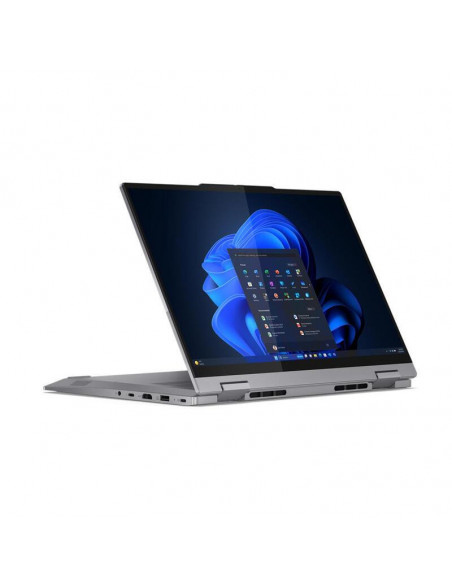 O Lenovo Thinkbook Yoga 14 2-em-1 é um dispositivo versátil que combina o melhor de um portátil e de um tablet. O seu ecrã de 14 polegadas proporciona uma experiência visual imersiva, ideal para trabalho ou lazer. A sua capacidade de rotação de 360 graus permite-lhe utilizá-lo em quatro modos diferentes: portátil, tablet, tenda e apresentação, adaptando-se a qualquer situação e necessidade. A sua estrutura fina e leve torna-o fácil de transportar para qualquer lado.