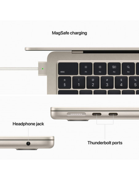 Portátil Apple MacBook Air 13.6p M2, 16GB RAM, 256GB SSD, Starlight