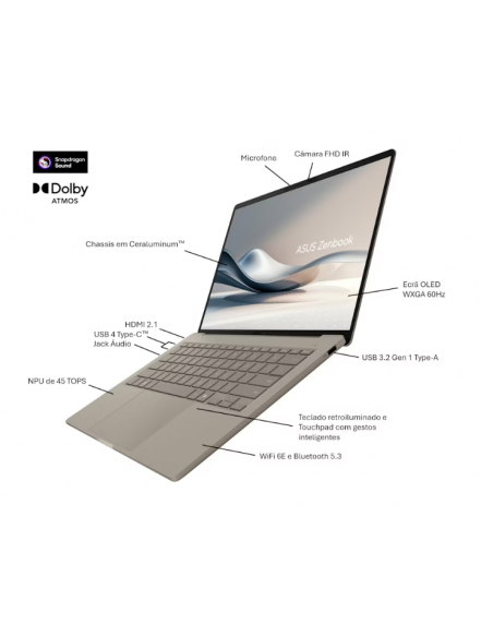 Portátil Asus 14p ZenBook A14 SnapDragon X1 |32GB|1TB|W11 Home