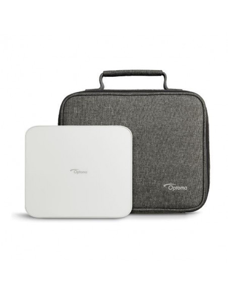 **Funcionalidades Adicionais:** Inclui uma bolsa para transporte e possui furo para cabo de segurança. A emissão acústica de 24dB em funcionamento e o silêncio total em standby garantem um ambiente tranquilo durante as apresentações ou sessões de entretenimento. A funcionalidade Wireless* (opcional) permite a projeção sem fios, expandindo ainda mais a sua versatilidade.